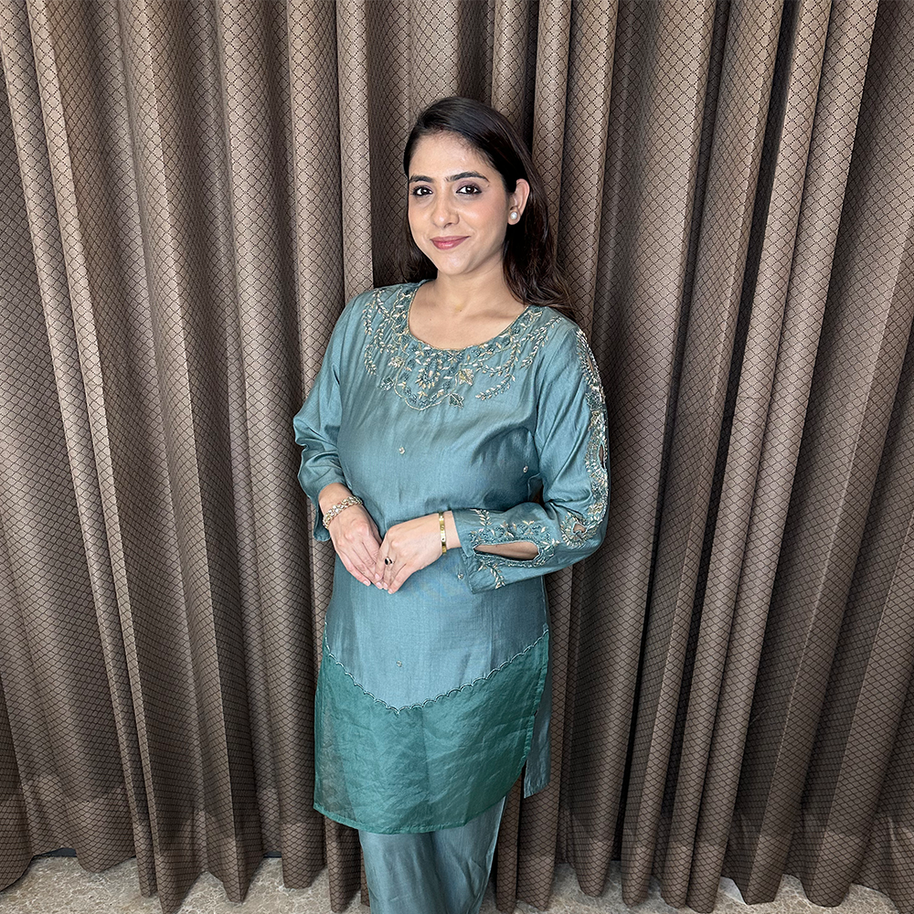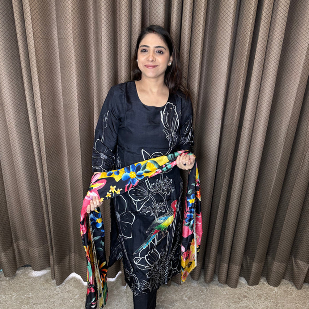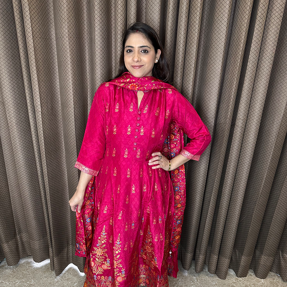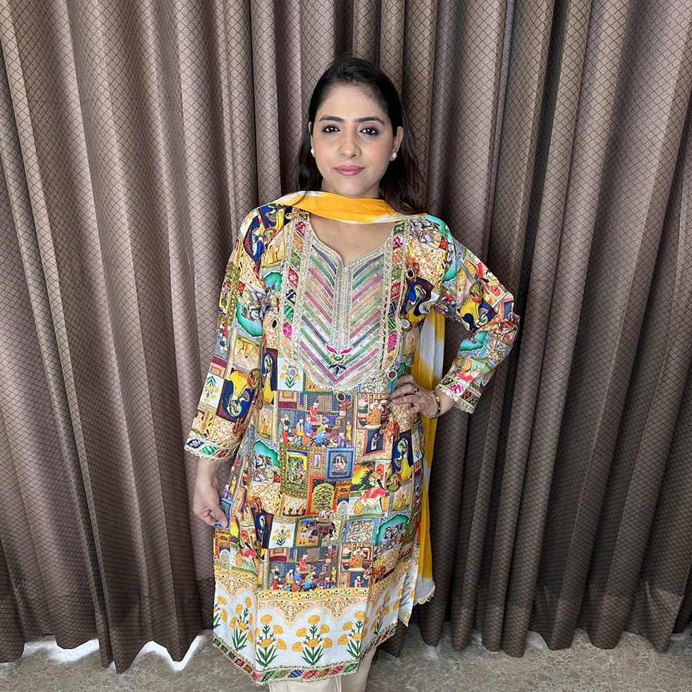Printed Mughal Motif Suit Set with Tassel Detailing