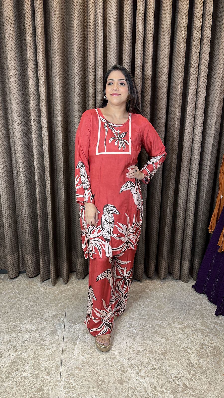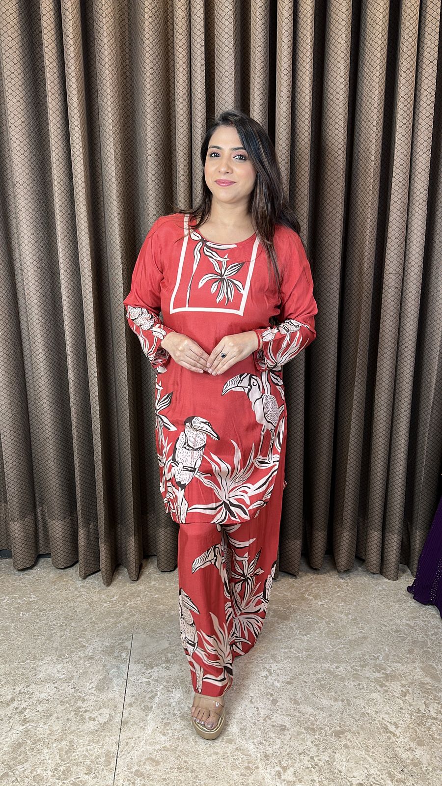 Rust Printed Co-ord Set with Tropical Motif