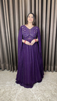 Purple Embellished Cape Style Anarkali Gown