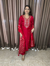 Crimson Red Embroidered Kurta Set with Matching Dupatta