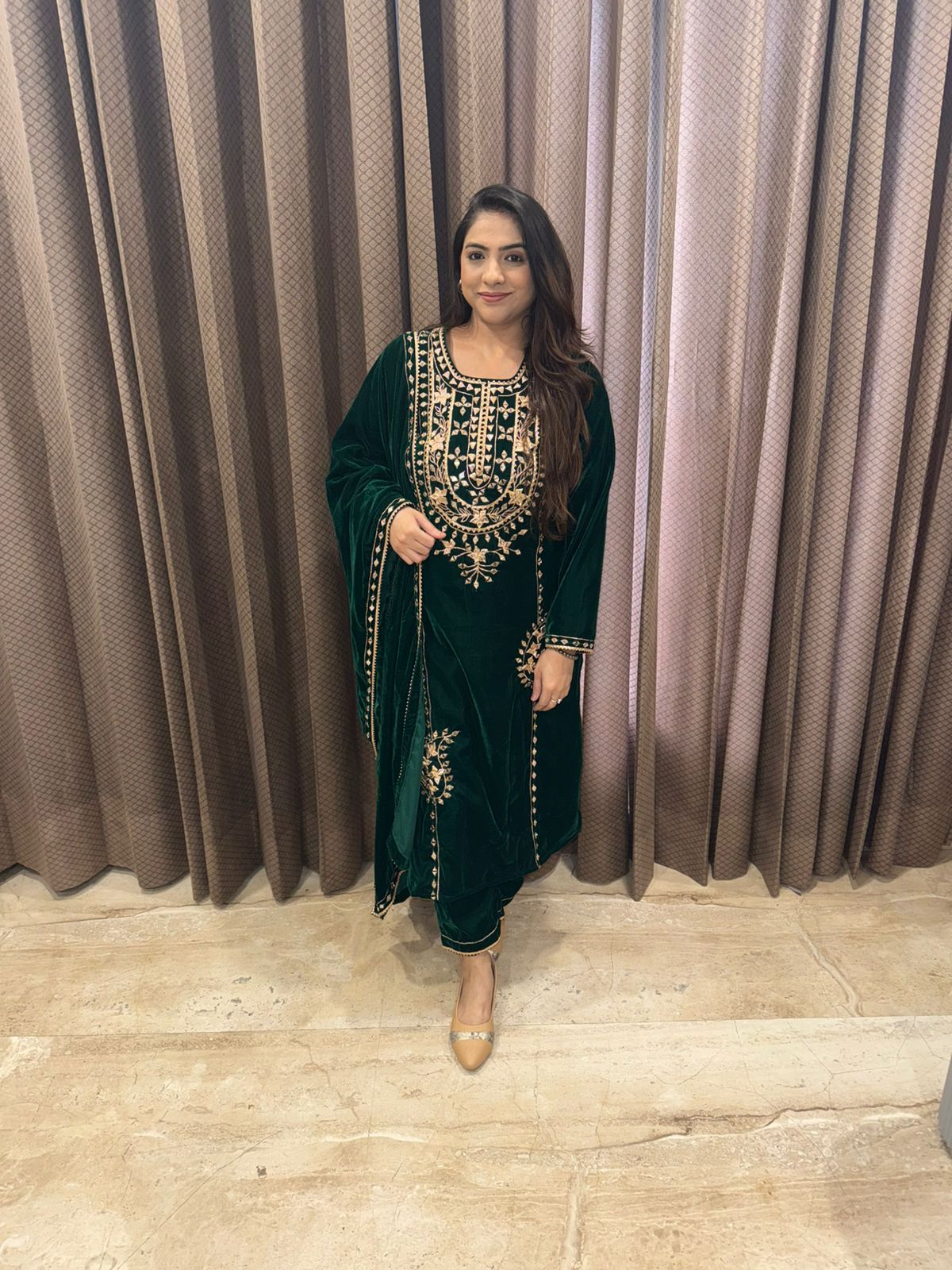 Green Velvet Kurta Set with Regal Gota patti Handwork & Dupatta