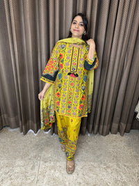 Vibrant Yellow Multicolor Printed Suit Set with Farshi Salwar