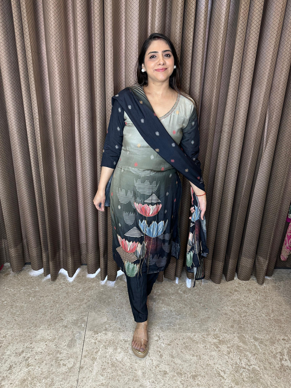 Black Floral Printed Kurta Set with Dupatta