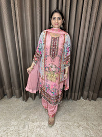 Blush Pink Floral Printed Suit Set with Embroidered Detailing